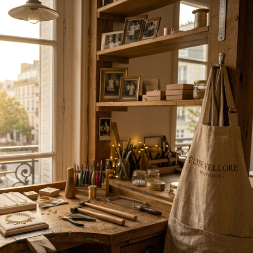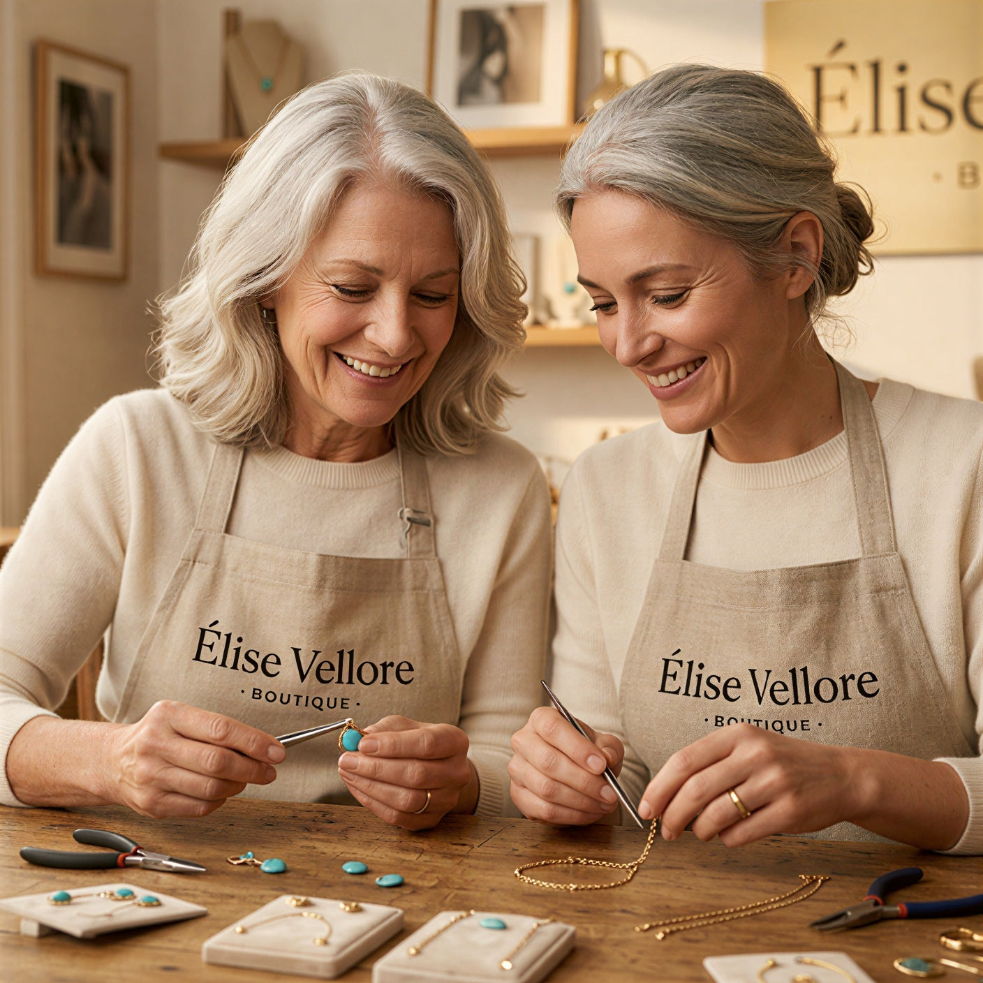 Élise Vellore est née d'une passion transmise de mère en fille. Depuis notre atelier parisien, nous créons des bijoux artisanaux qui célèbrent la beauté authentique et les moments précieux de la vie. Chaque pièce est façonnée à la main avec amour et savoir-faire, pour devenir un trésor que vous chérirez pour toujours.